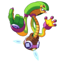 | 細かい説明 | 元々は地形調査用のロボット。 身が軽く行動範囲を選ばない。 蛇型特殊弾頭「サーチスネーク」が特殊武器。 地を這い、壁も上るサーチスネークはトラップ発見、破壊などに便利。 ジェミニに見せると発狂する。 慎重に策を練り、しつこくじわじわと相手を追い詰める地道な戦いが得意。 正々堂々を好むハードマンとは仲が悪い。 『4』のトードマンが大好き。トードマンは不快そうでもスネークは気にしない。 SFCソフト『ロックマンズサッカー』に参加しており、必殺シュートも『サーチスネーク』だった。 |