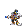 | 細かい説明 | 元々は慰安サーカス団のメンバーだったロボット。 「目立ちたかったから。」という短絡的な理由で軍団入りを志願した。 新作手品の研究に余力を惜しまない努力家だが、それが裏目に出て手品を披露する度に仲間からはうんざりされている。 「マジックカード」でライフを奪い、自分のライフを回復する。 他にハトの出てくるボール、ロンパーズ(ザコ)の出てくるボールを投げてくる。 デザインは岩本佳浩氏。 |