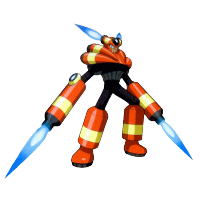 | 細かい説明 | 火炎放射器を内蔵した環境破壊ロボット。 キングの実験中、偶然発見した謎のガスで超高温の火を放射できる。 自然を焼き尽くすようにキングに命令されている。 別に本人は自然破壊したいわけではなく、「一日一つのジャングルを焼かないと自爆装置が起動する」というキングの嘘を信じ、特殊武器「ウェーブバーナー」でひたすらジャングルを焼きまくっている。 高速での突進と、足止めトラップの後のバーナー攻撃、手榴弾で攻撃する。 デザインは有賀ヒトシ氏。 |