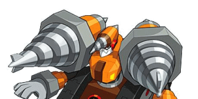| 細かい説明 | キングが開発した遺跡発掘用ロボット。 軍団の中で最もパワーがある。 仕事熱心で、掘り始めたら、やめろと言われるまで掘り続ける。 一人孤独にトンネルを掘っているのが好きという、暗い性格の持ち主。 その一方で自分が発掘した財宝を着服しているという噂がある。 特殊武器「スプレッドドリル」は、射出後に2個、4個と分裂させることが可能な貫通性のドリル型ミサイル。 ドリルタンクに変形可能。 デザインは岩本佳浩氏。 当初名前は「ドリルマン」で、「ドリルマンいるよ?」と言われ焦って改名。 |